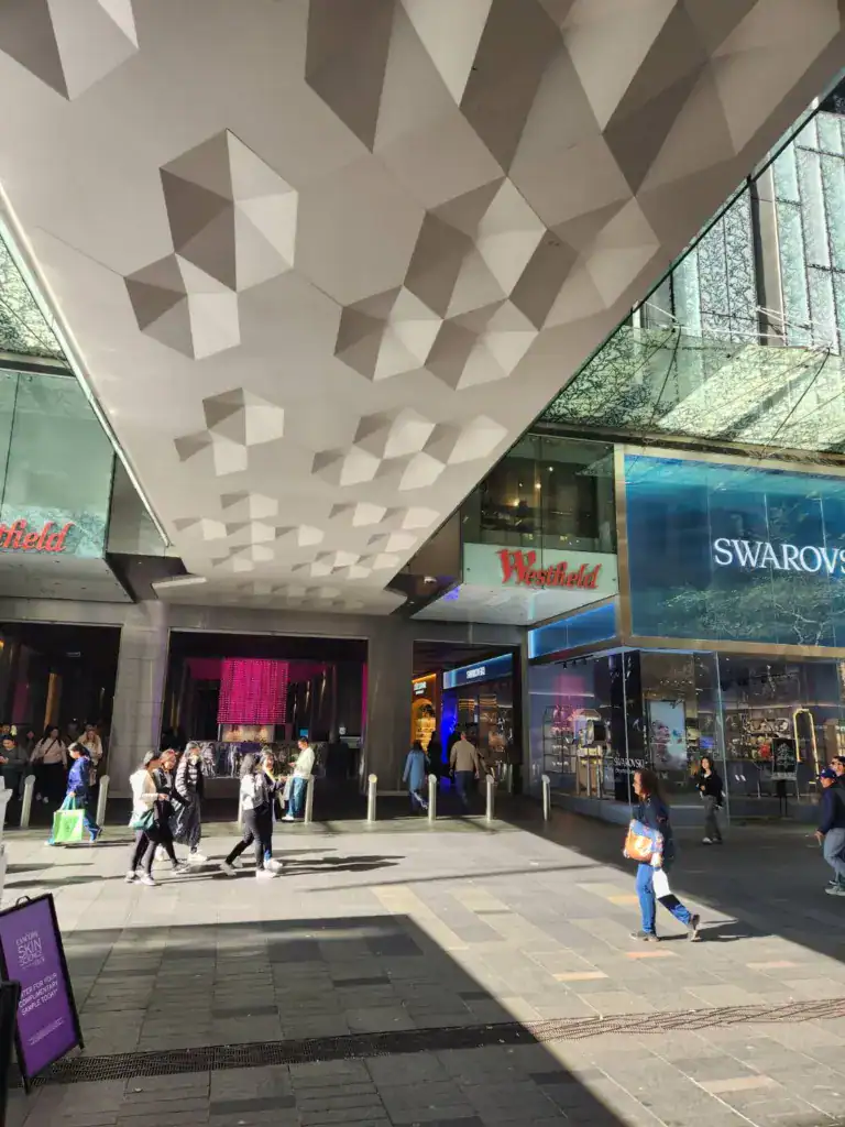 在雪梨塔旋轉餐廳吃飽後,不妨到樓下的 Westfield Sydney 和 Myer 逛逛。Westfield 是雪梨市中心最大的高級百貨公司,裡面有很多精品品牌👢,風格有點像台北 101,逛起來很有質感。